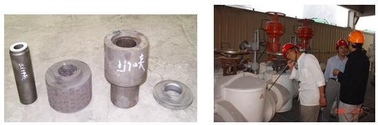 a. 使用秦申公司的专利技术——加工新式迷宫型节流套;