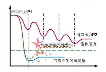 可知,当流速急剧增加时,静压力就会急剧下降,当降到流体的饱和压力之下时,产生了严重的汽蚀,在很多情况下, 汽蚀产生的冲击波压力高达2000Mpa以上,大大超过了金属材料的疲劳破坏极限,对密封面处产生致命的破坏。